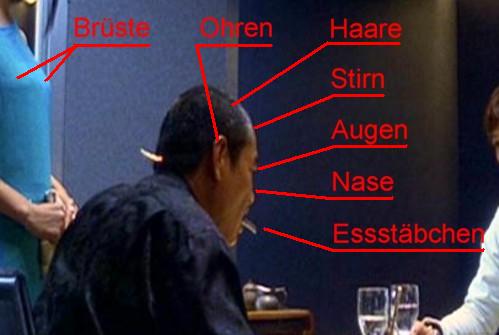 :lol: Eigentlich sollte die Essstäbchenszene verdeutlicht werden, und nicht die sekundären Geschlechtsmerkmale einer Frau.