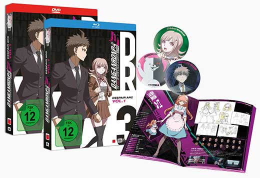 ) erscheint nun Volume 1 von "Despair Arc". Die Veröffentlichungen kommen mit einem Booklet und drei Sammel-Buttons mit verschiedenen Überraschungsmotiven.